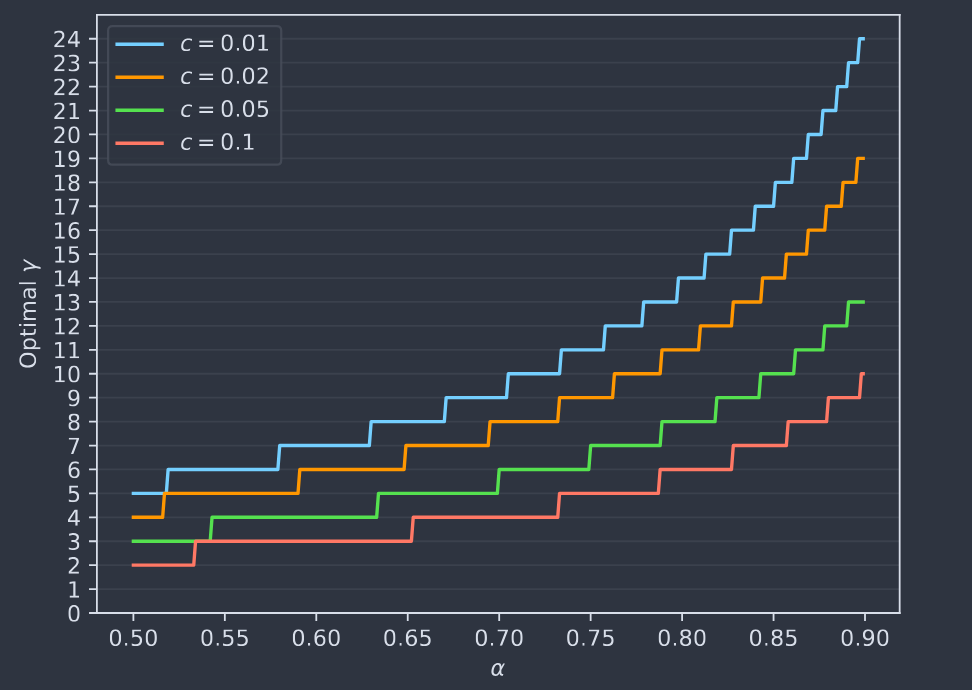 The optimal $\gamma$ should be the one maximizing the walltime improvement equation (enough compute resources).